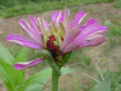 Corn earworm feeding on zinnia