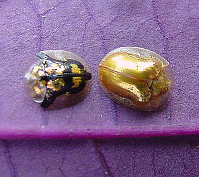 Spotted and golden tortoise beetles.